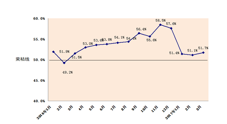 2017年3月内蒙古自治区物流业景气指数为51.7%