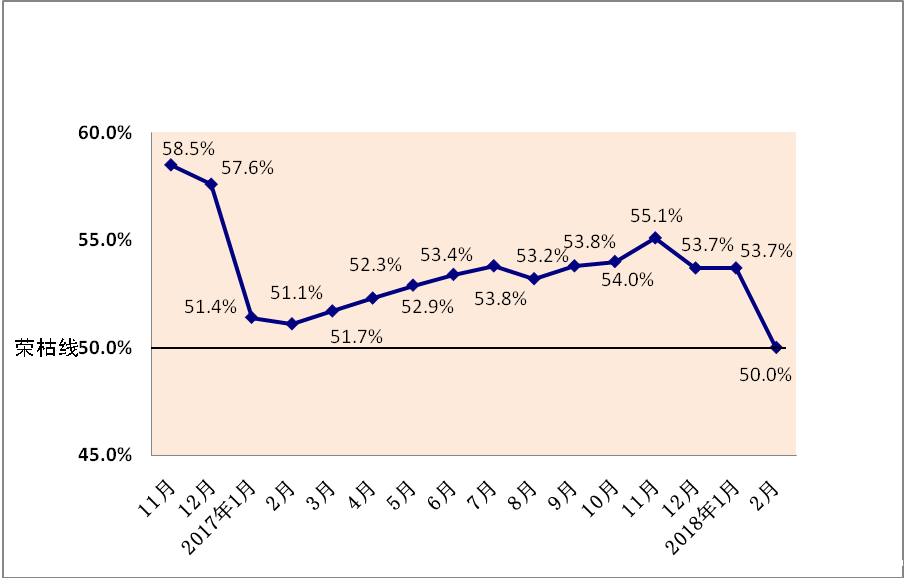 2018年2月份内蒙古自治区物流业景气指数为50%,比1月份物流业景气指数低3.7个百分点,与全国2月份物流业景气指数持平。