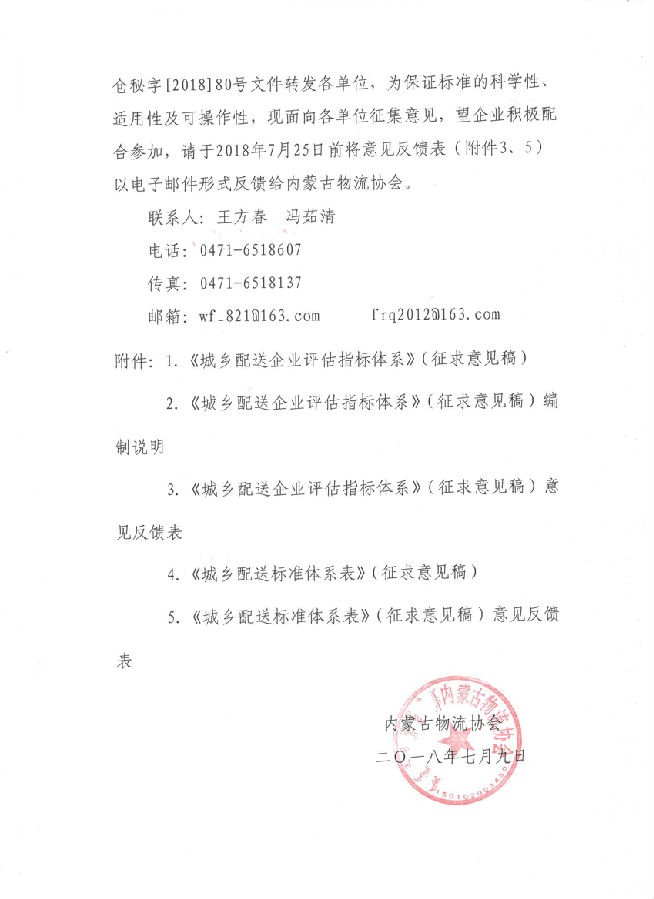 转发关于征求团体标准《城乡配送企业评估指标体系》修改补充意见的函