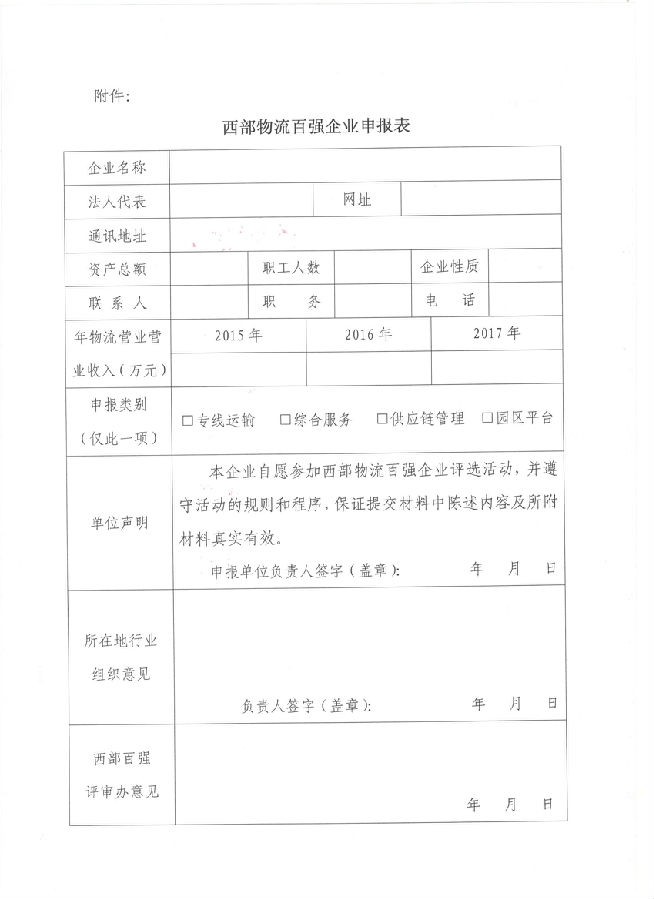 关于开展第四届“西部物流百强企业”推选活动的通知