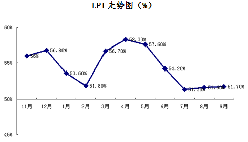 9月份,物流业景气指数较上月小幅上升,仍保持在50%以上,显示出物流活动仍保持平稳运行的态势。资金周转率指数回落,主营业务利润指数仍然位于50%以下,反映企业经营仍存在较大压力。