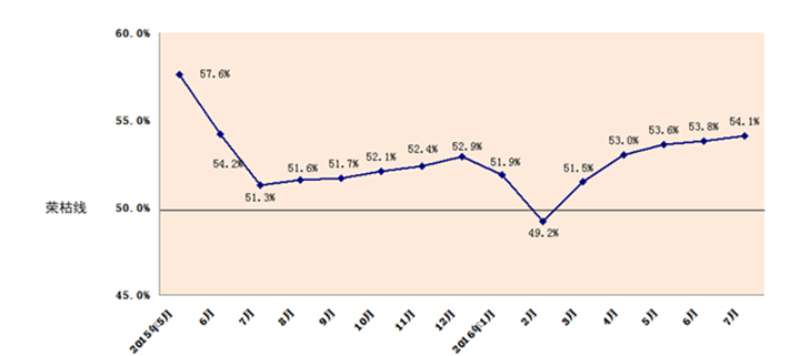 2016年7月内蒙古自治区物流业景气指数为54.1%